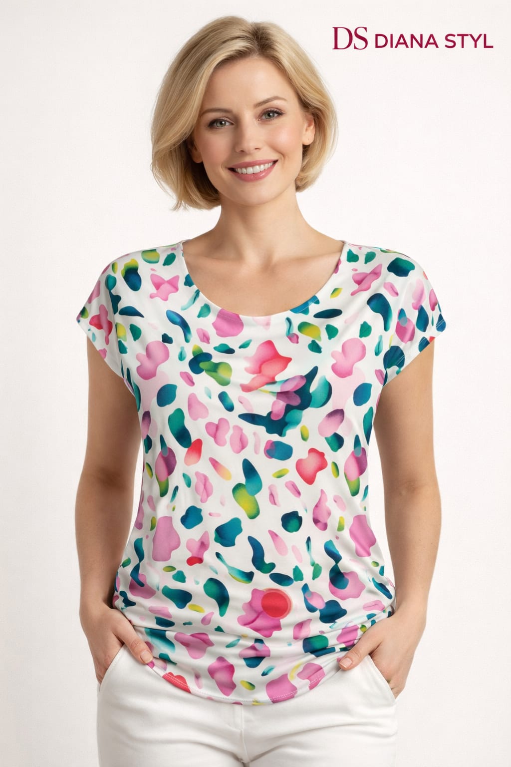 Luxusní halenka, která rozzáří každý outfit Elegantní halenka z exkluzivní vzorované látky okouzlí na první pohled svým jemným leskem a harmonickou kombinací teplých tónů béžové, karamelové a hnědé. Zlatý foliový nátisk dodává materiálu sofistikovaný třpyt, který krásně reaguje na světlo a podtrhuje prémiový charakter tohoto modelu. Lehká, splývavá a příjemně pružná látka se dokonale přizpůsobí postavě, nelepí se a vytváří elegantní siluetu. Klasický výstřih lichotí dekoltu a dělá z halenky univerzální kousek, který snadno zkombinujete jak s elegantními kalhotami, tak s džínami či sukní. Tento model je ideální volbou pro ženy, které chtějí vypadat upraveně, žensky a sebevědomě – ať už v práci, na schůzce nebo při slavnostnější příležitosti. Díky nadčasovému vzoru a preciznímu zpracování se stane oblíbenou součástí šatníku na dlouhá léta. Prémiová kvalita • pohodlí po celý den • nadčasová elegance DS – Diana Styl Dodáváme ve velikostech 36,38,40,42,44,46,48,50,52,54,56